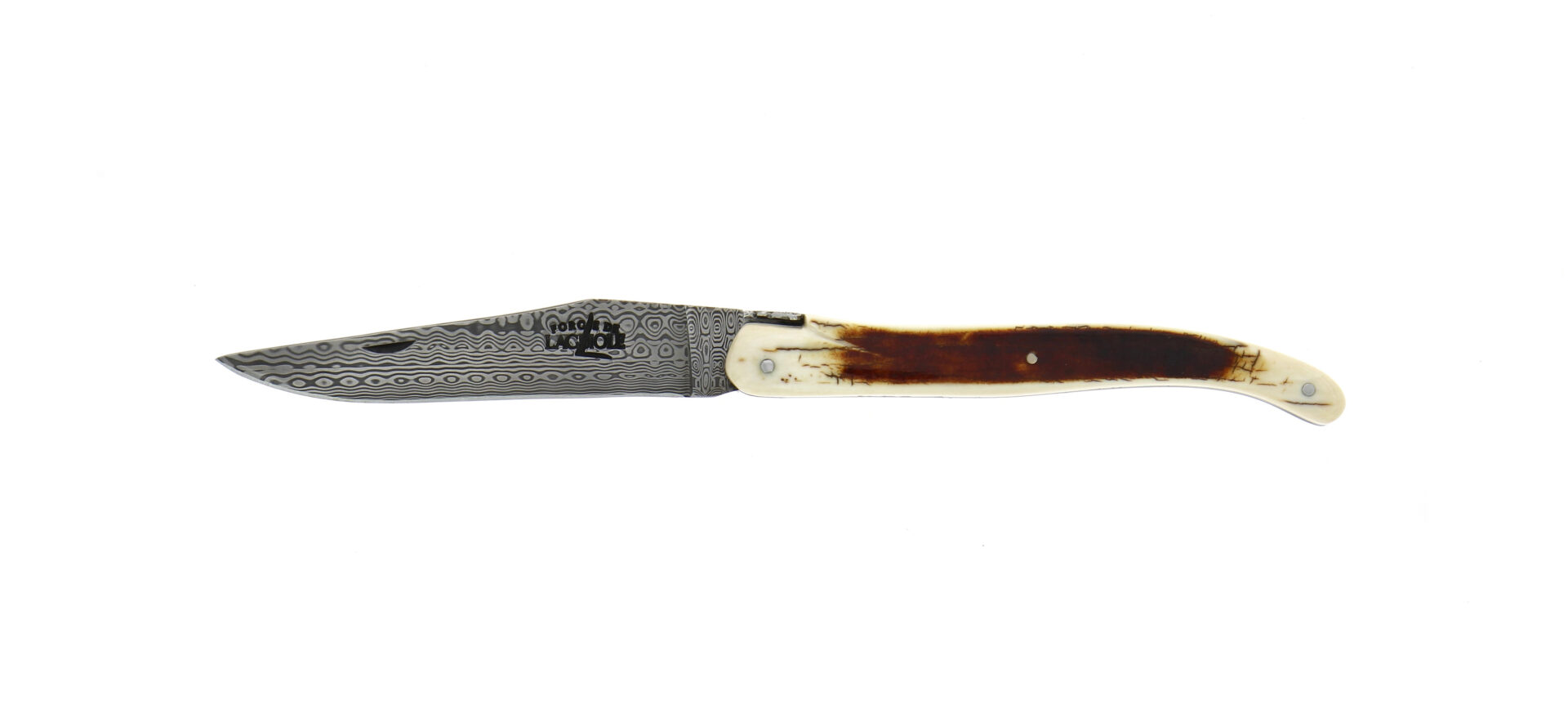 Entdecken Sie dieses Klappmesser ziseliert Biene,Griff aus Mammut-Elfenbein außen, Inox-Damast Klinge, hochglanz poliert
